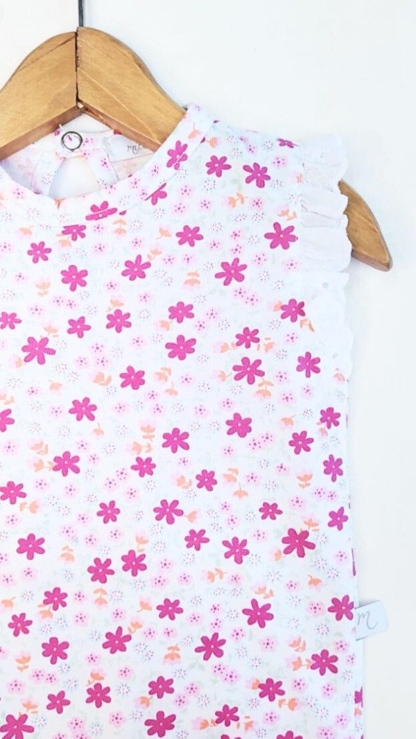 Body estampa "Margaritas" cuellito gota con detalle de broderie blanco en hombros