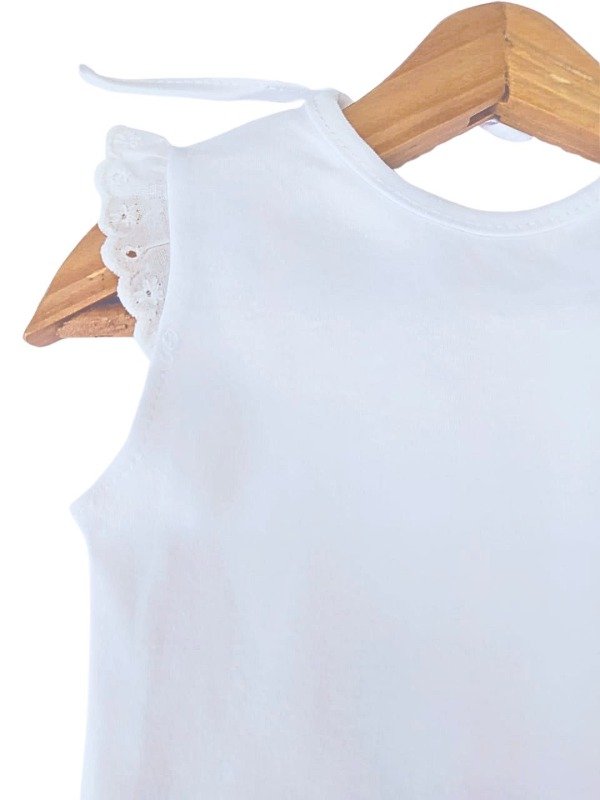 Body liso blanco cuellito gota con detalle de broderie blanco en hombros