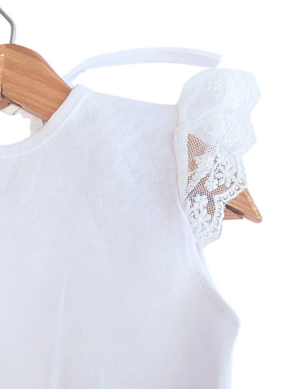 Body liso blanco cuellito gota con detalle de puntilla de tul bordada color manteca en hombros