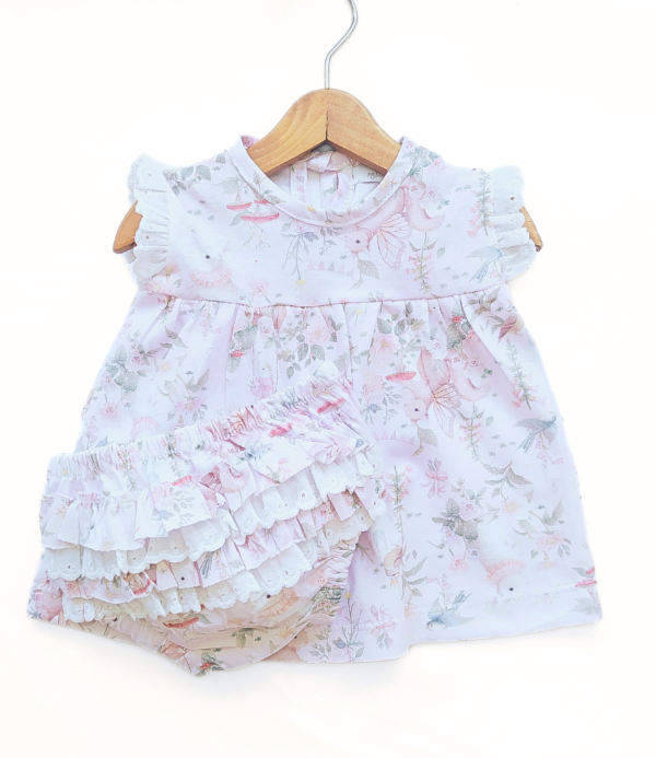 Bombachita cubre pañal estampa "spring" con detalle de voladitos de broderie