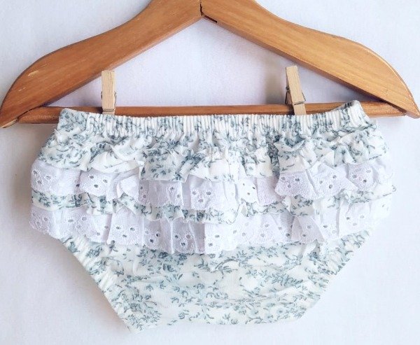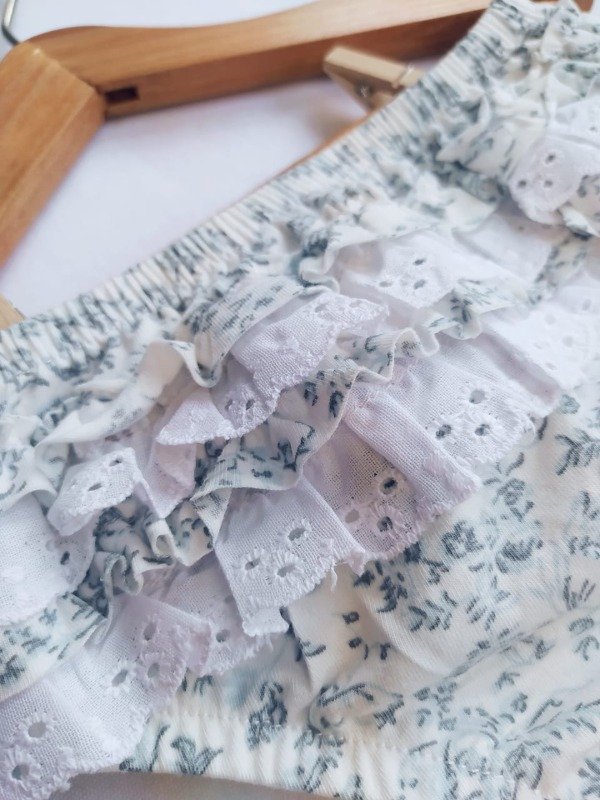 Bombachita cubre pañal estampa "Liberty aqua" con detalle de voladitos de broderie