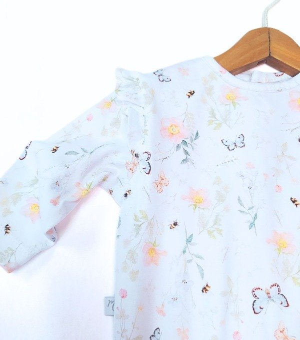 Enterito con piecitos estampa "LIA" con delicado detalle de voladitos en los hombros