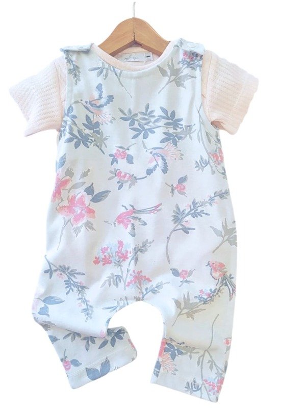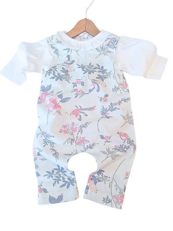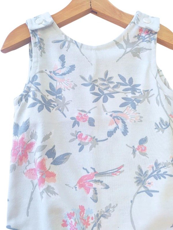 Jardinero estampa ¨Gala¨ con breteles con botón al tono