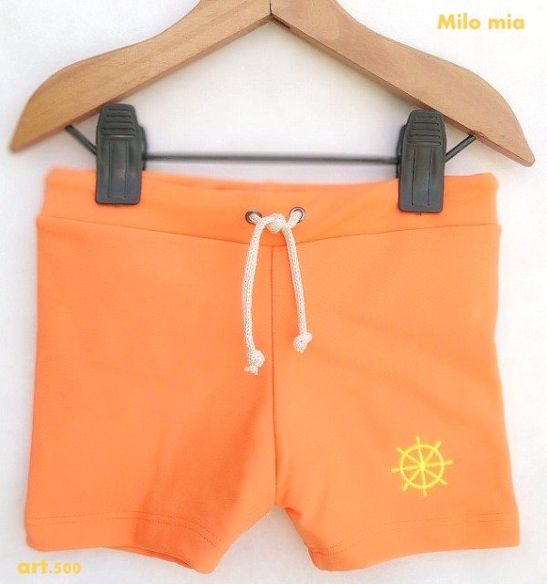 Short de baño bebe liso anaranjado con detalle de timon bordado